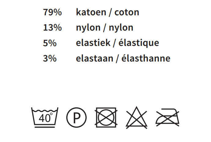 De sokken zijn gemaakt van 79% katoen, 13% nylon, 5% elastiek en 3% elastaan.