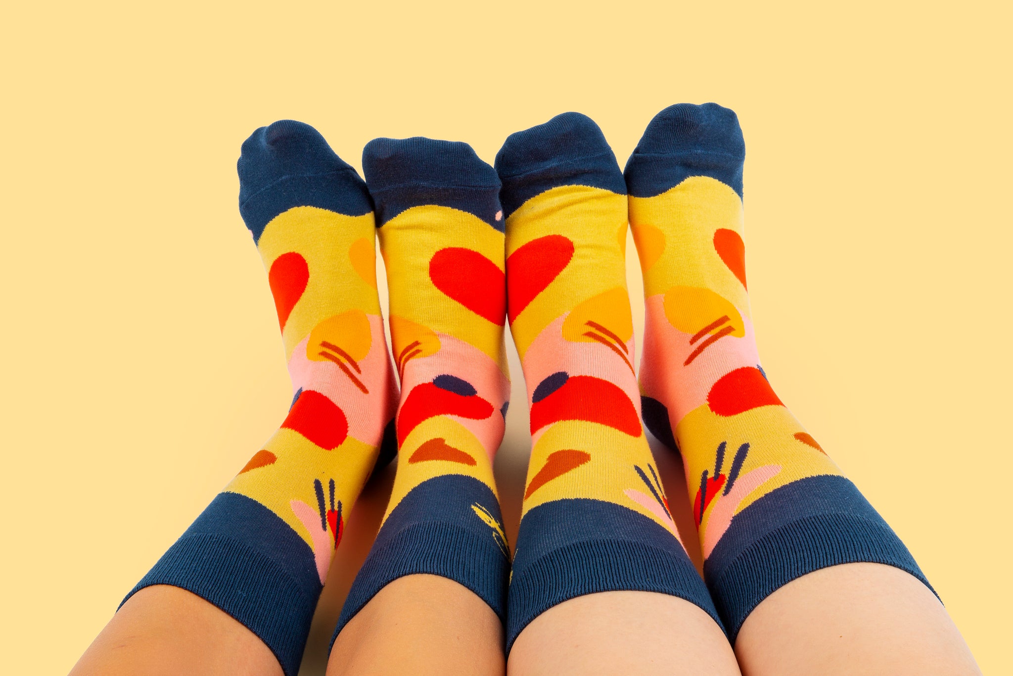 Kom stijlvol en vrolijk voor de dag met onze nieuwe muco socks! Door je voeten te plaatsen naast deze van een sokkenmaatje (zowel model voor kinderen als volwassenen) kan je een hart vormen. Da's extra gezellig!